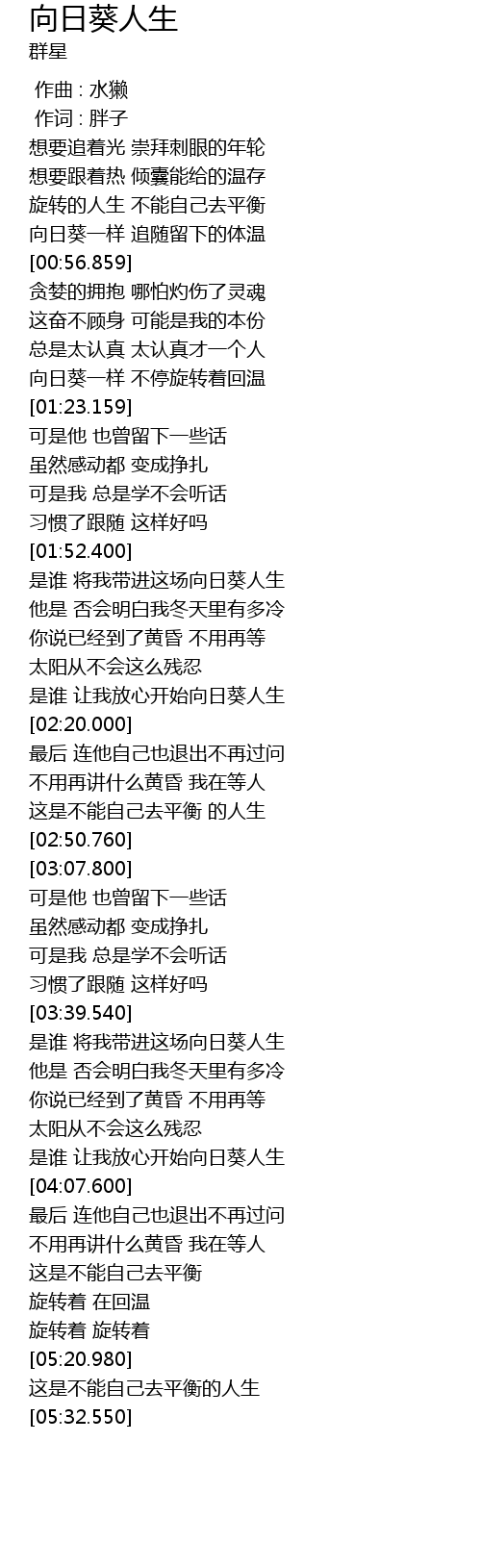 | [02:19.440] | 是谁 让我放心开始向日葵人生 |
