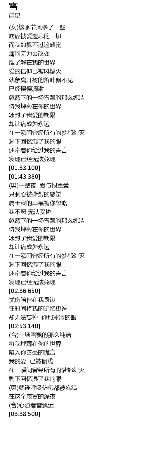 | [02:55.150] | (合)一场雪飘的那么纯洁 |