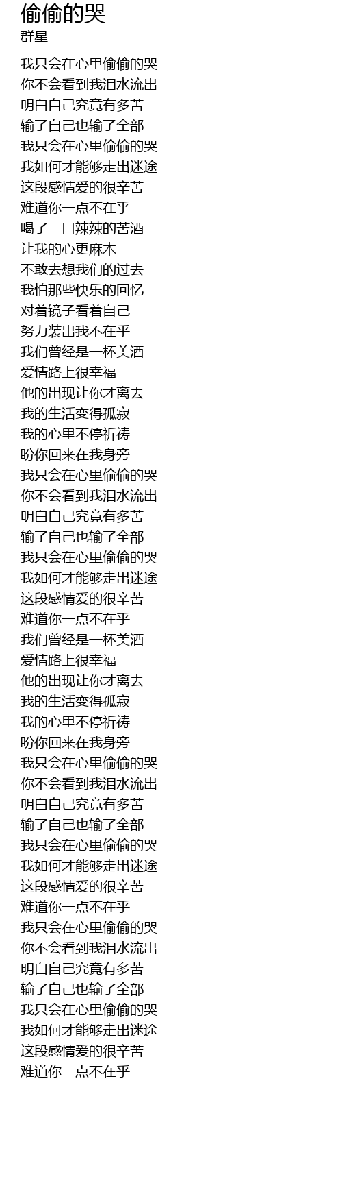 偷偷的哭 tou tou de ku Lyrics