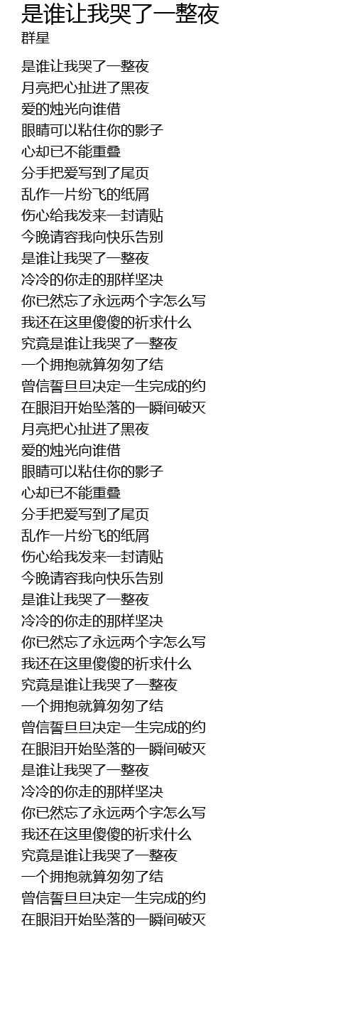 | [00:04.13] | 是谁让我哭了一整夜 |