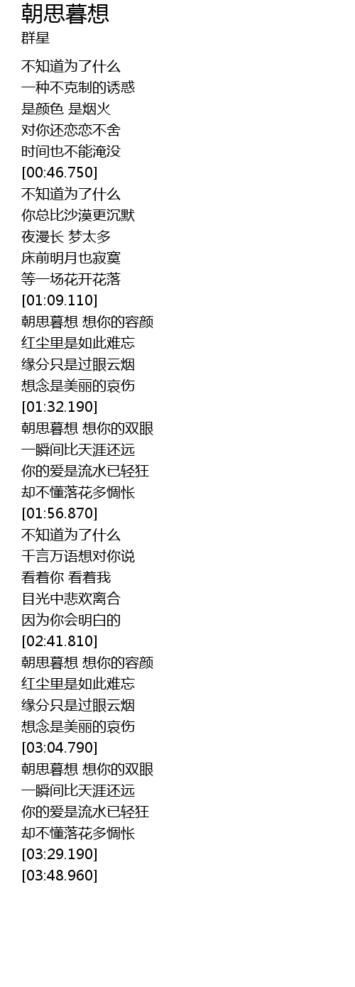 | [03:05.550] | 朝思暮想 想你的双眼 |