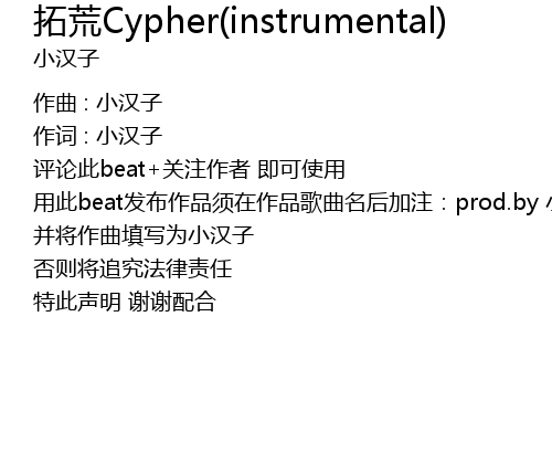 | 用此beat发布作品须在作品歌曲名后加注:prod.by 小汉子 | |