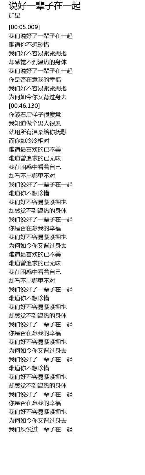 | [03:35.250] | 我们说好了一辈子在一起 |