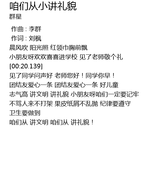 | [01:11.500] | 咱们从 讲文明 咱们从 讲礼貌! |