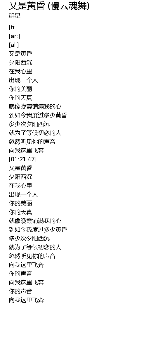 | [02:20.91] | duō shǎo cì xī yáng xī chén |