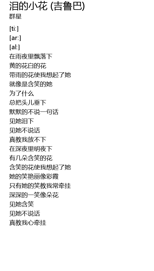 | [01:48.36] | yǒu jǐ duǒ hán xiào de huā |