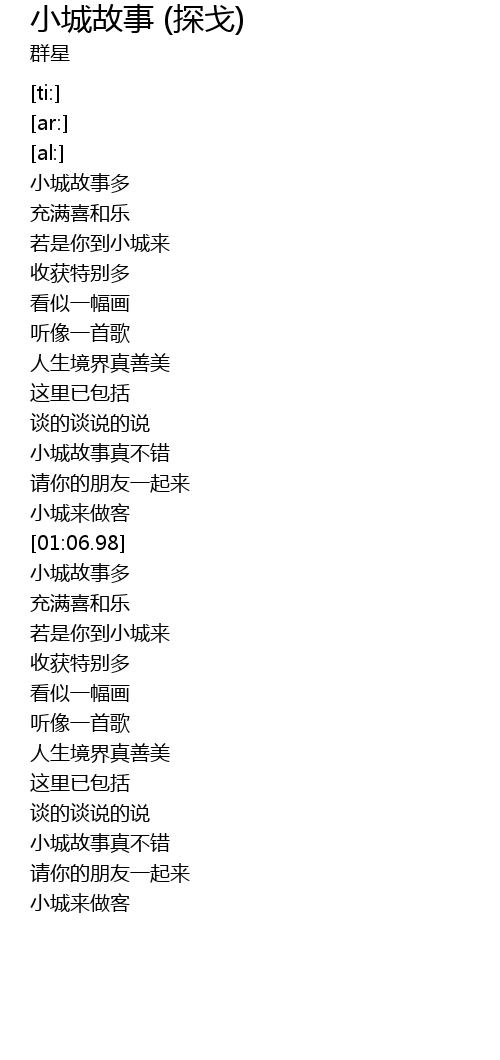 | [01:24.74] | xiǎo chéng gù shì duō |