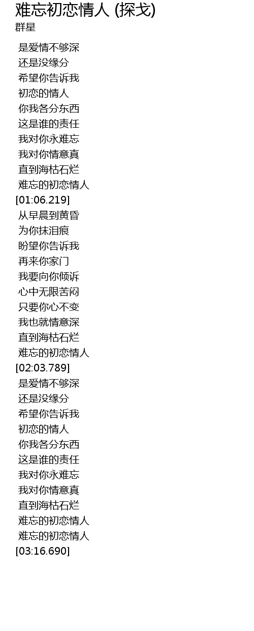 | [03:06.500] | 难忘的初恋情人 |