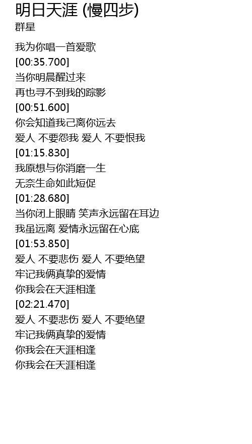 | [02:51.510] | 爱人 不要悲伤 爱人 不要绝望 |