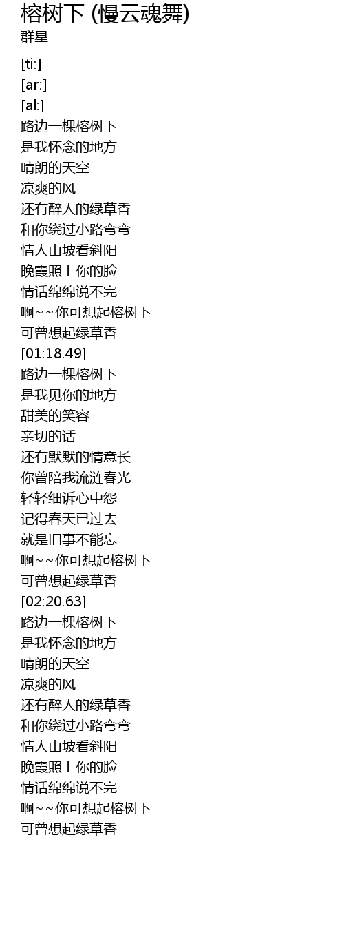 | [01:07.27] | 啊~~你可想起榕树下 |