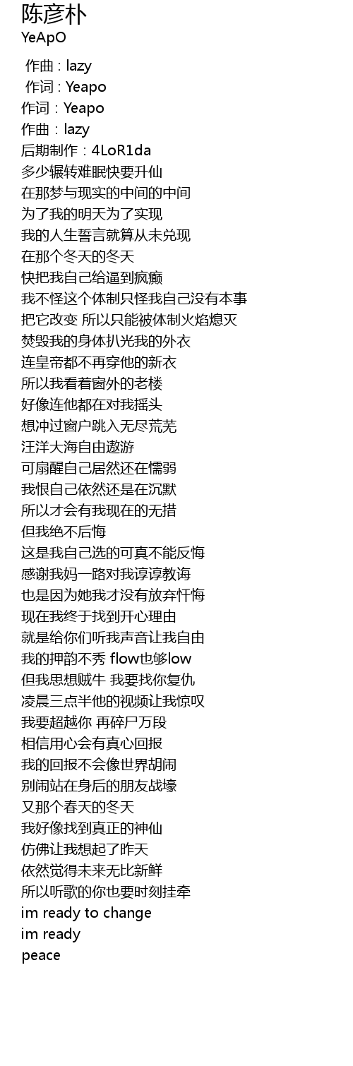 | [00:29.963] | wǒ de rén shēng shì yán jiù suàn cóng wèi duì xiàn |