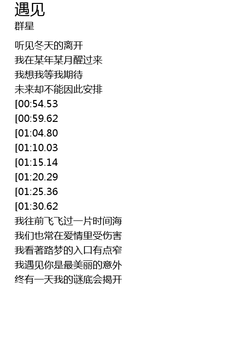 | [02:17.54][01:15.14] | 我遇见谁会有怎样的对白 |
