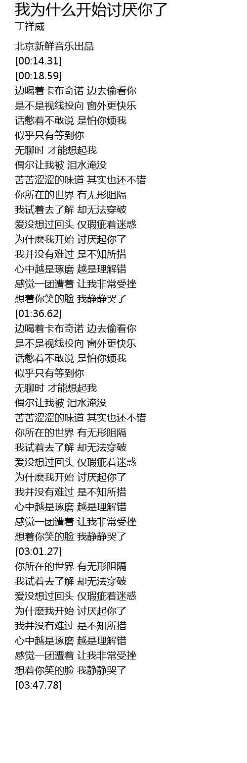 | [03:27.08] | 为什麽我开始 讨厌起你了 |