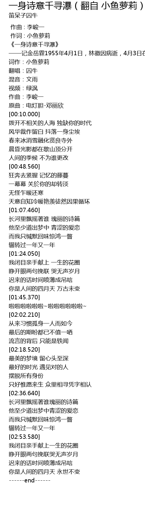 | [00:00.100] | 《一身诗意千寻瀑》 |
