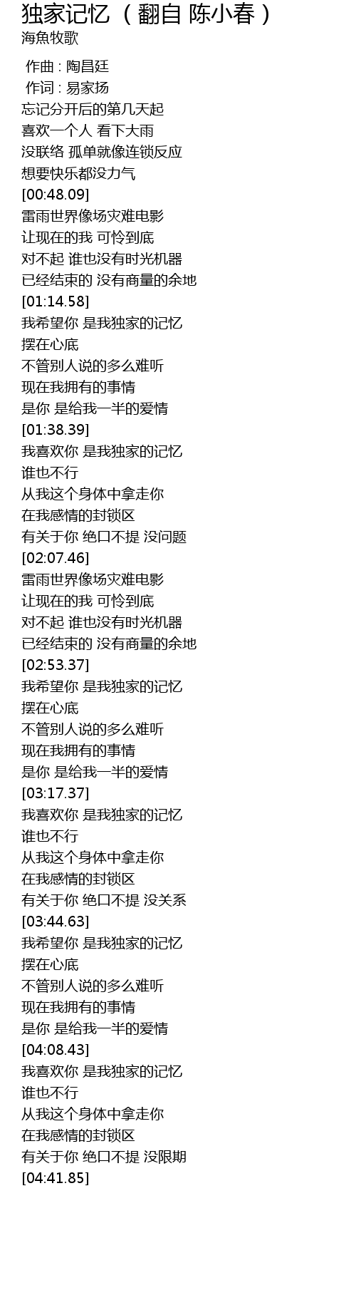 | [03:45.33] | 我希望你 是我独家的记忆 |