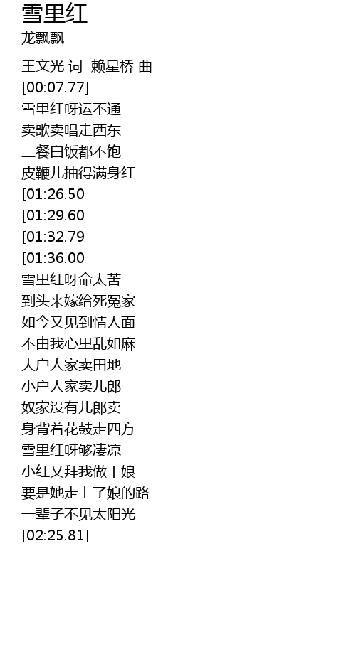 | [01:01.12] | 雪里红呀命太苦 |