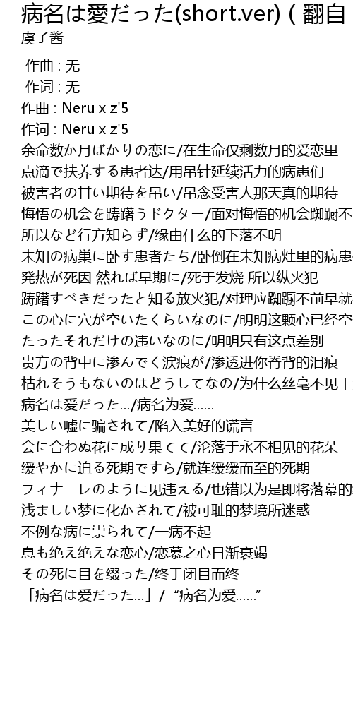 | [01:39.793] | 「病名は爱だった...」/“病名为爱......” |