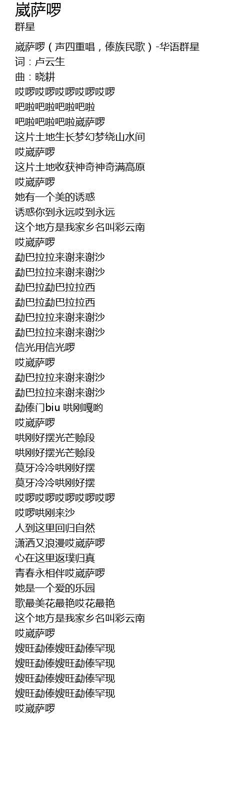 | [00:00.00] | 崴萨啰(声四重唱,傣族民歌)-华语群星 |