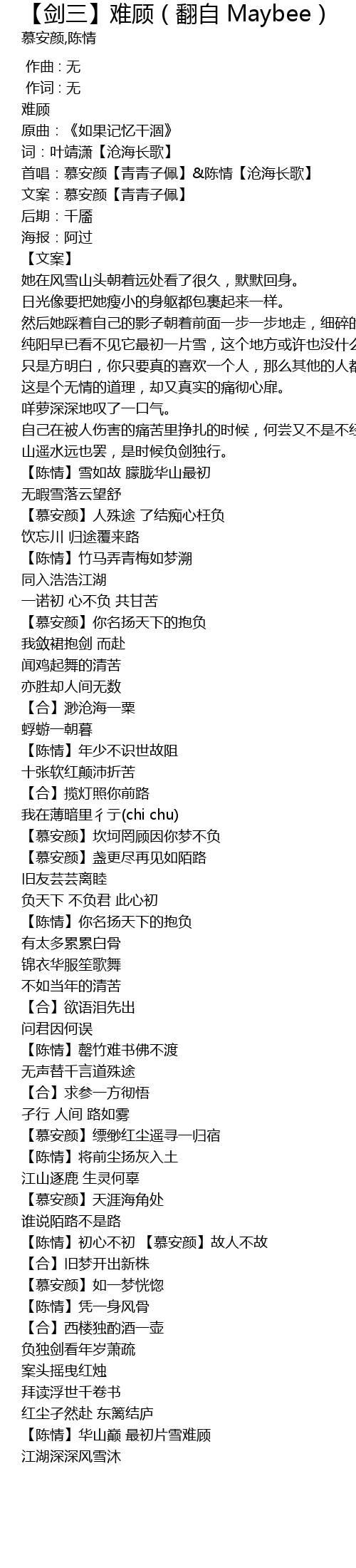 | [03:29.876] | 【陈情】初心不初 【慕安颜】故人不故 |
