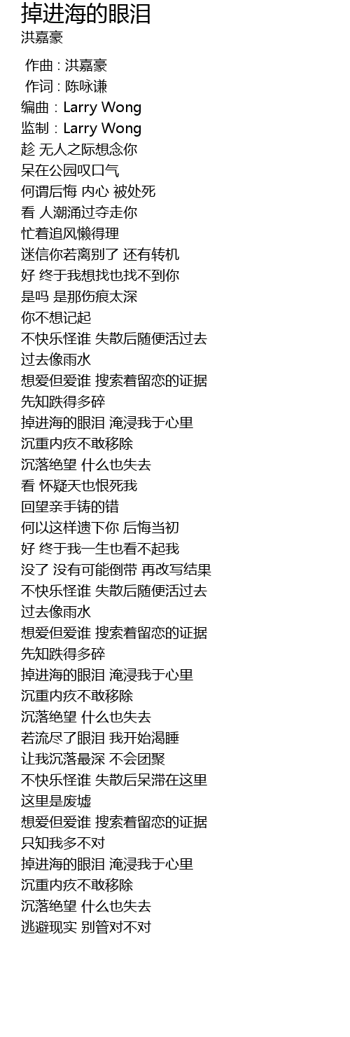 | [03:16.23] | 掉进海的眼泪 淹浸我于心里 |
