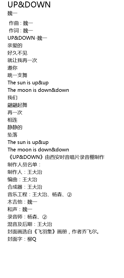| [02:59.969] | 《UP&DOWN》由西安时音唱片录音棚制作 |