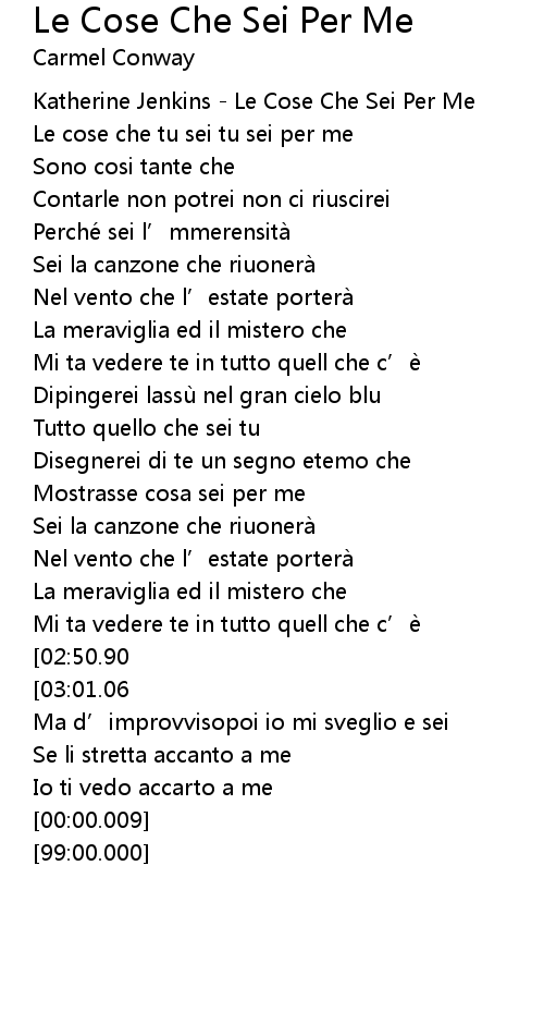 | [00:01.32] | Katherine Jenkins - Le Cose Che Sei Per Me |