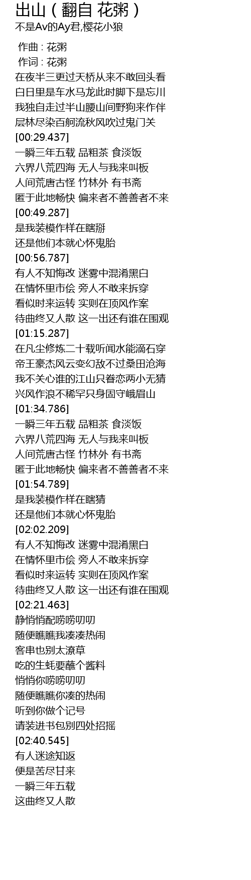 | [00:30.188] | 一瞬三年五载 品粗茶 食淡饭 |