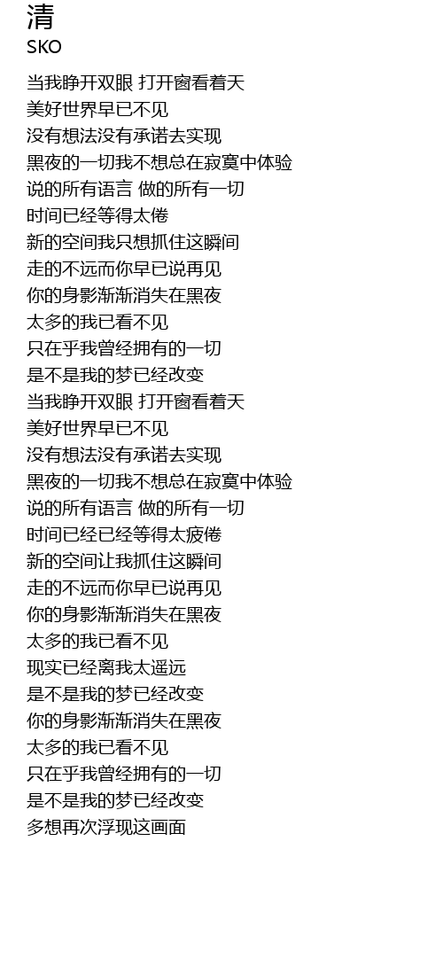 | [00:23.85] | 当我睁开双眼 打开窗看着天 |