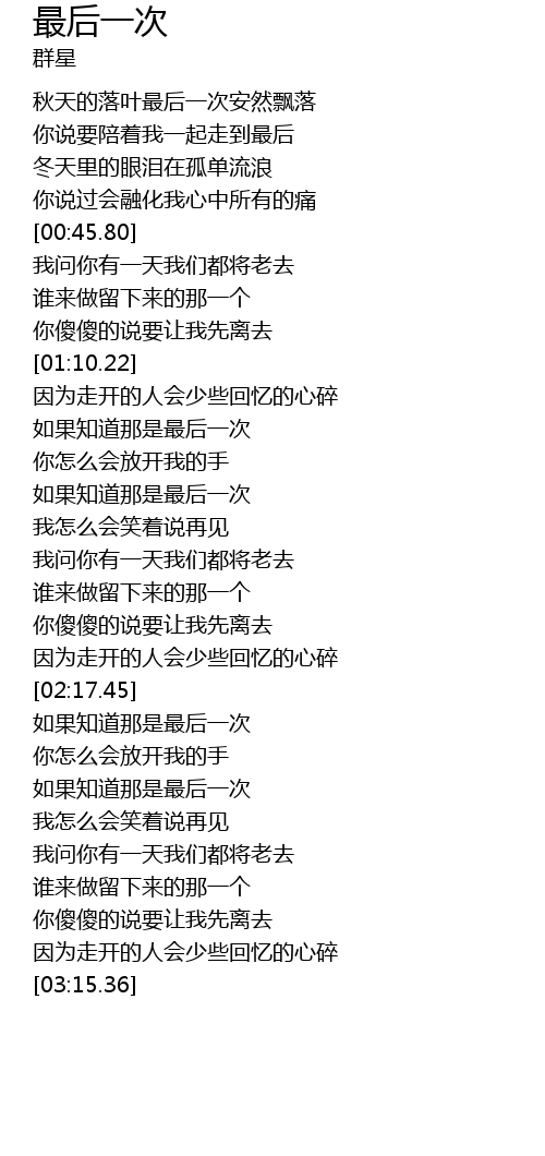 | [01:34.80] | ru guo zhi dao na shi zui hou yi ci |