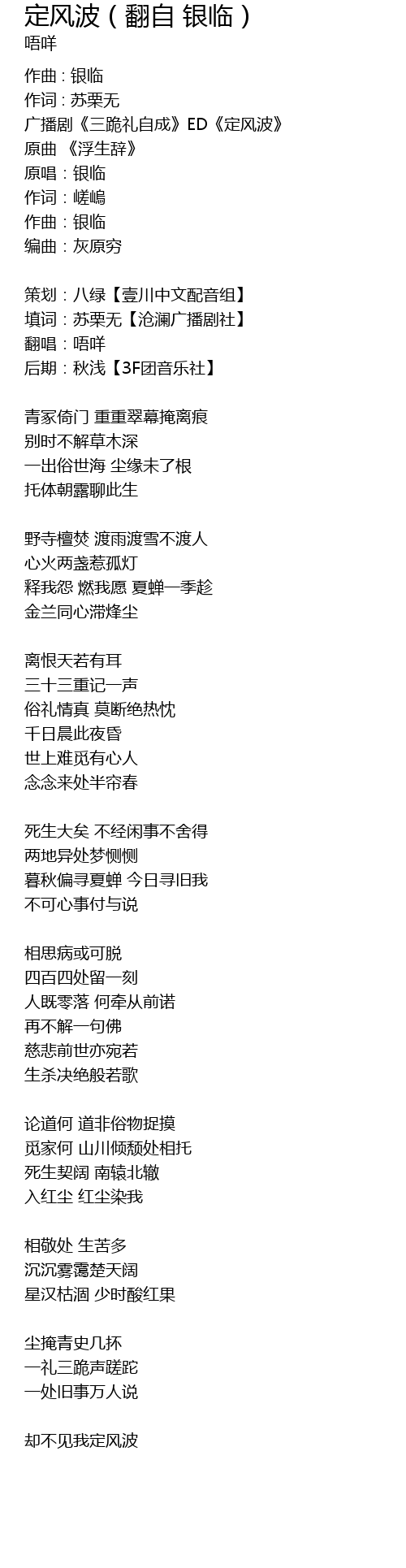 | 广播剧《三跪礼自成》ED《定风波》 | |