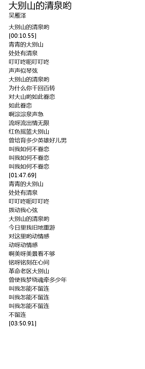 | [00:04.37] | dà bié shān de qīng quán yō |