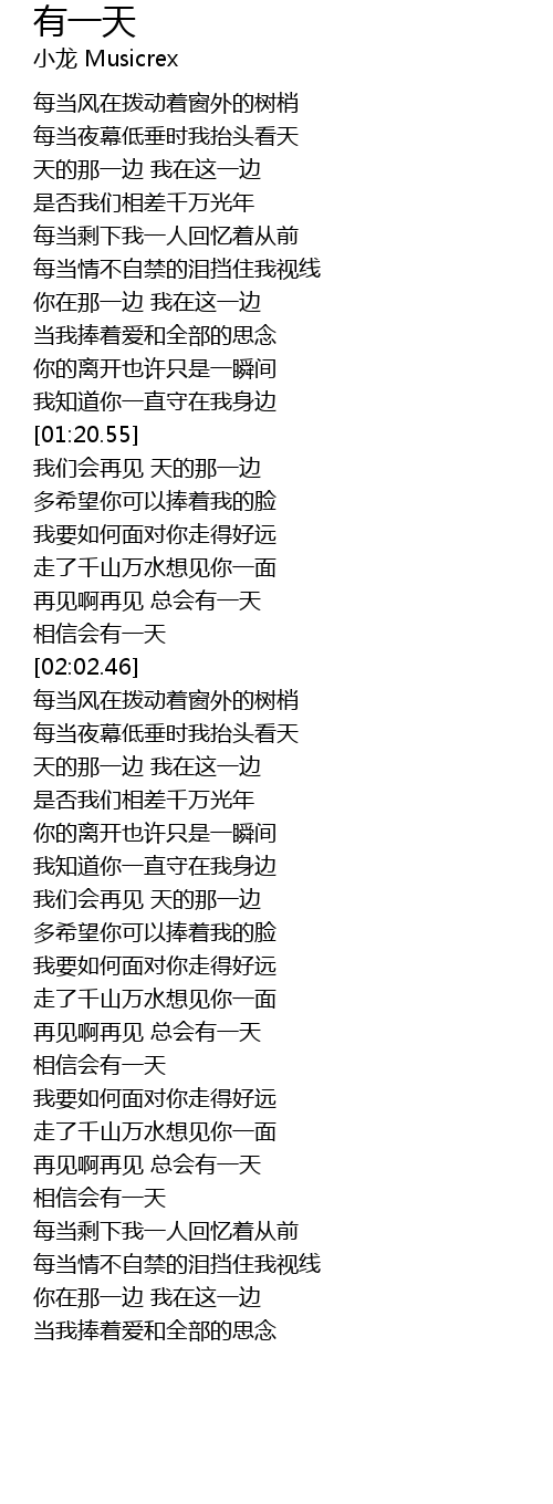 | [01:58.24] | xiāng xìn huì yǒu yì tiān |