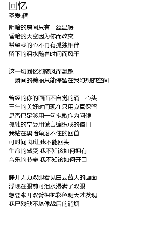 | Song | 回忆 |