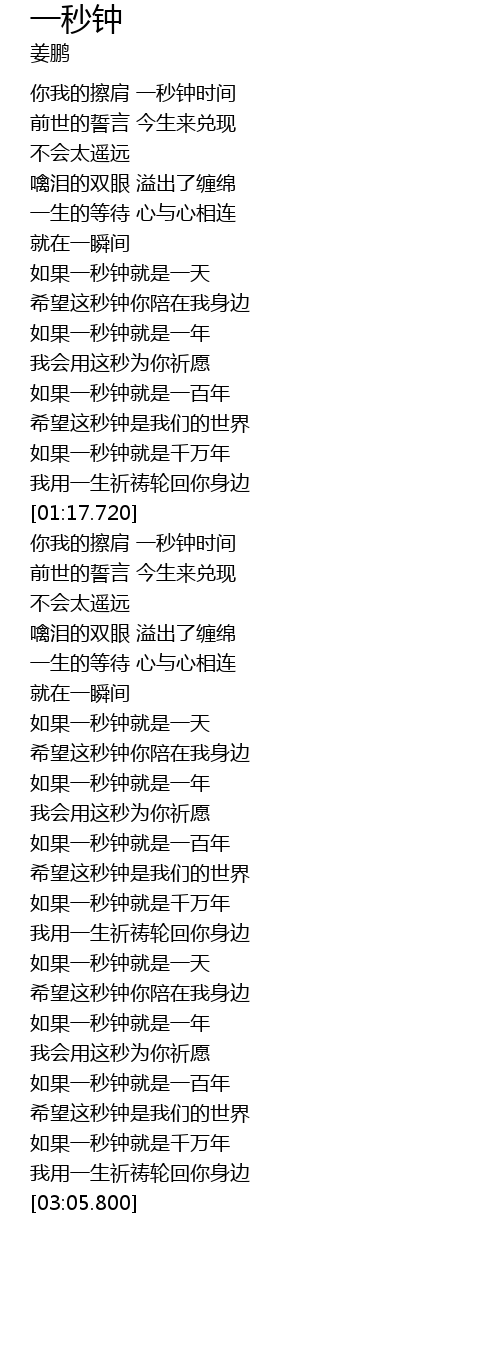| [00:58.90] | 我会用这秒为你祈愿 |