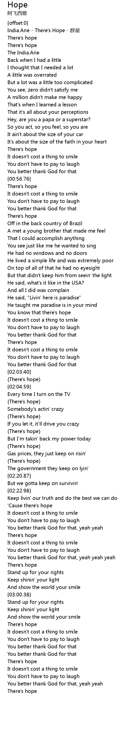 | [00:00.48] | India. Arie There' s Hope qún xīng |