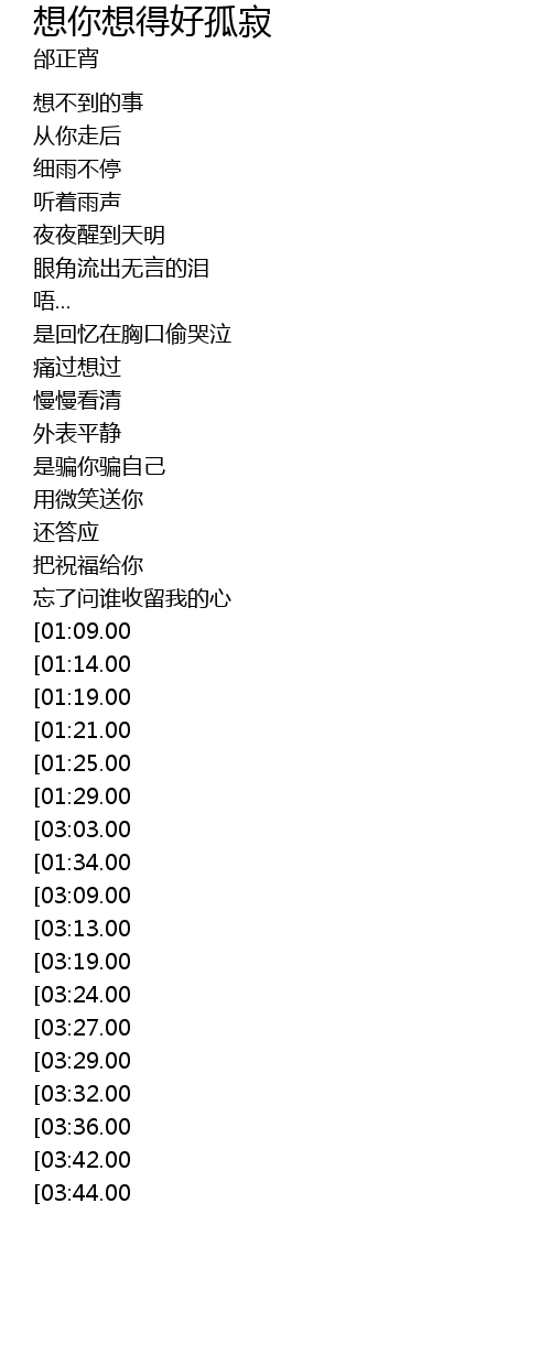 | [04:00.00][03:03.00][01:32.00] | 想?想得好孤寂 |