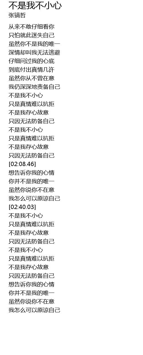 | [01:50.95] | bú shì wǒ bù xiǎo xīn |