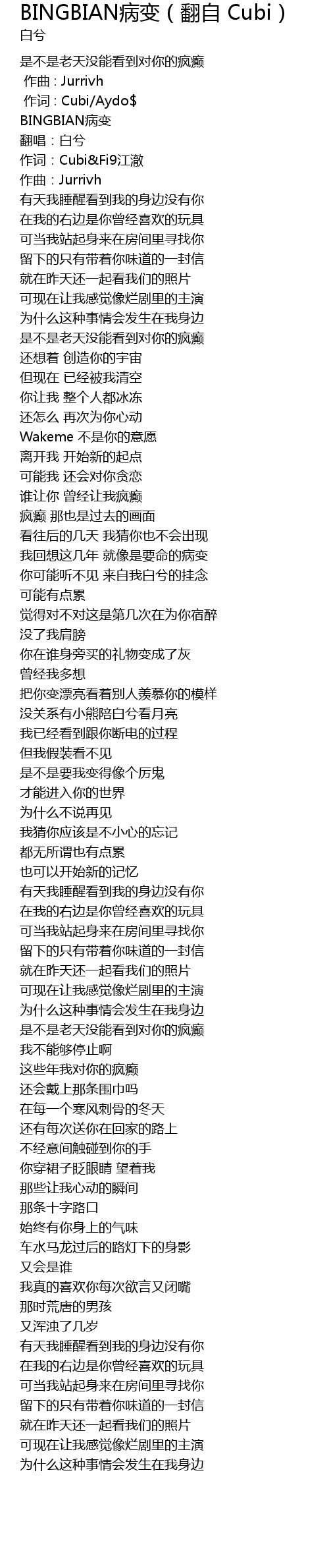 | [00:01.000] | 作词 : Cubi/Aydo$ |