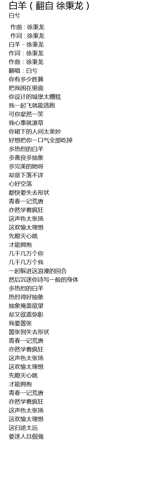 | [00:01.676] | 白羊 - 徐秉龙 |
