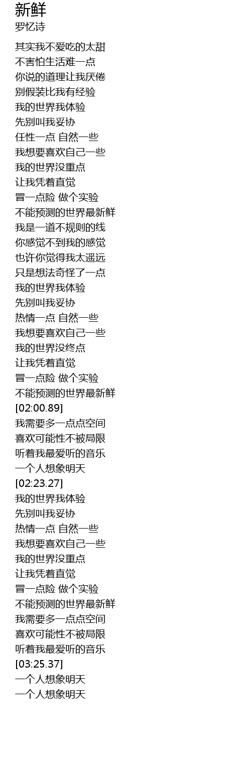 | [01:52.71] | 不能预测的世界最新鲜 |