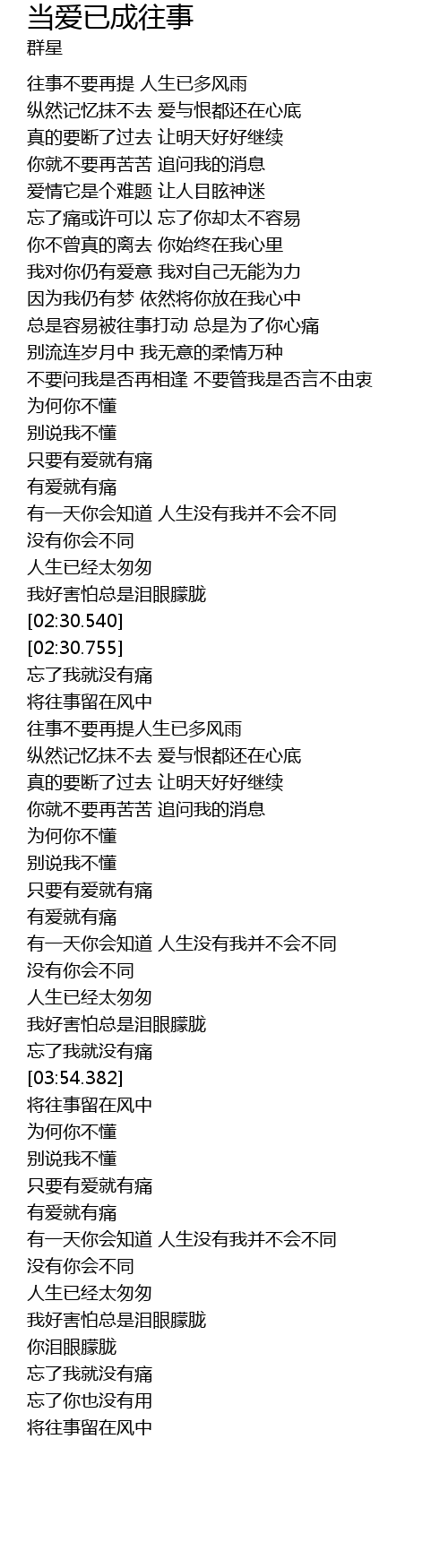 [02:43.166] wang shi bu yao zai ti ren sheng yi duo feng yu