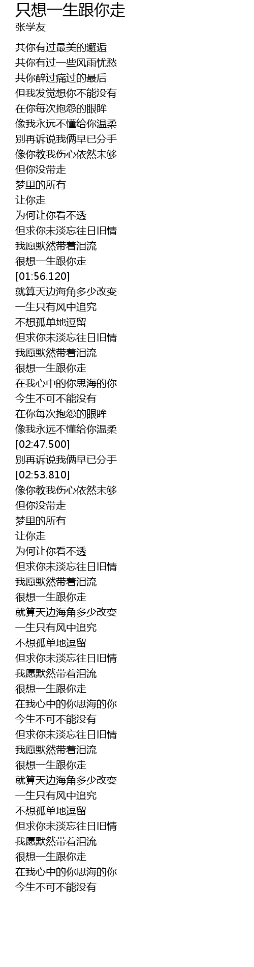 | [04:13.200] | hen xiang yi sheng gen ni zou |