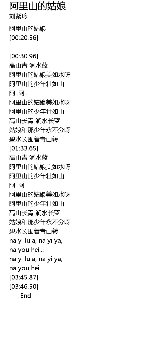 | [00:05.01] | 阿里山的姑娘 |