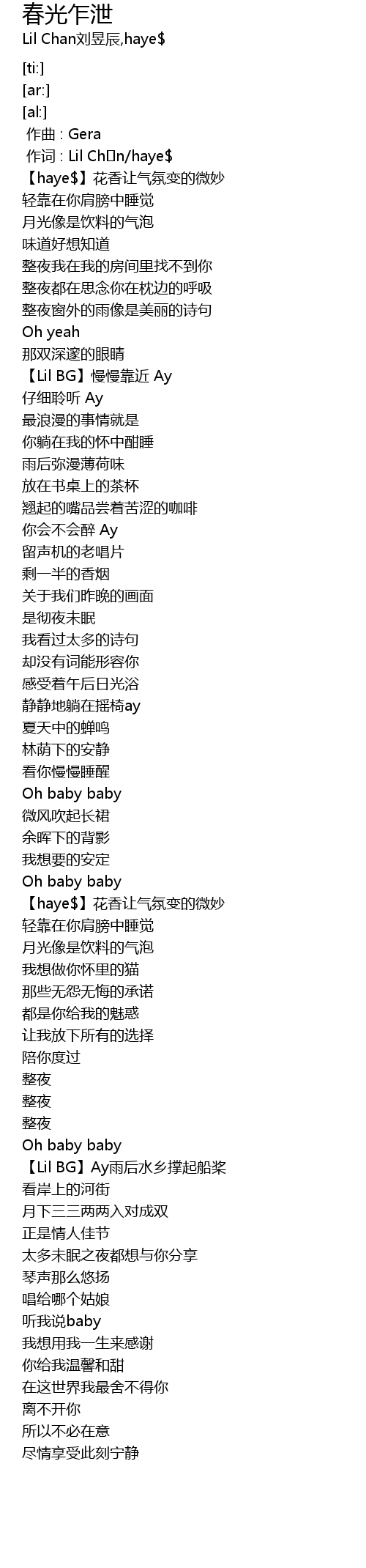 | [00:01.000] | 作词 : Lil Chən/haye$ |