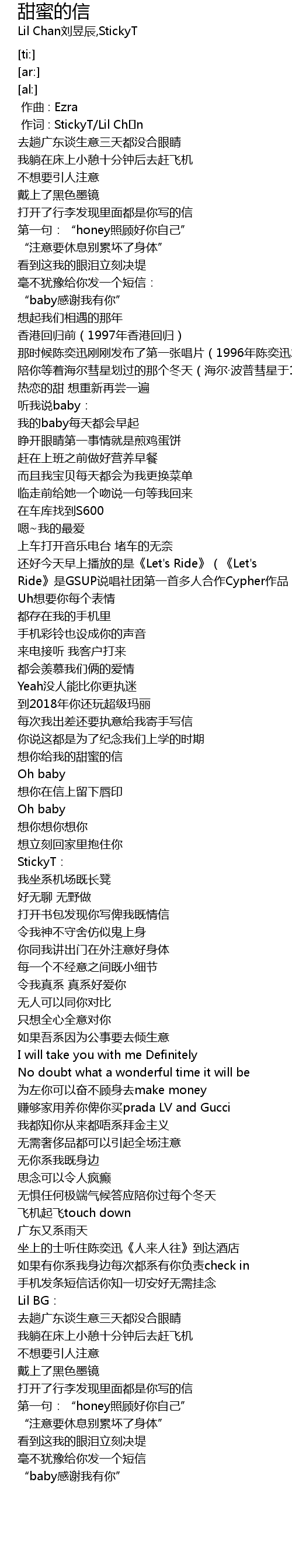 | [00:01.000] | 作词 : StickyT/Lil Chən |