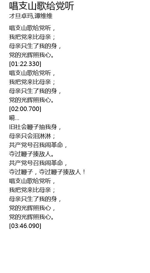 | [02:51.420] | 唱支山歌给党听, |