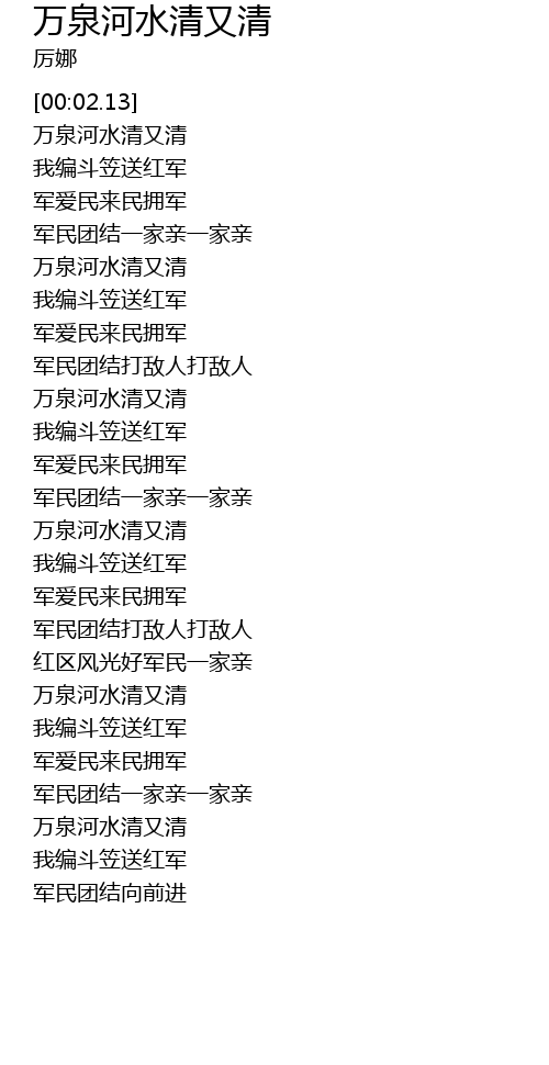 | [02:47.38] | 万泉河水清又清 |