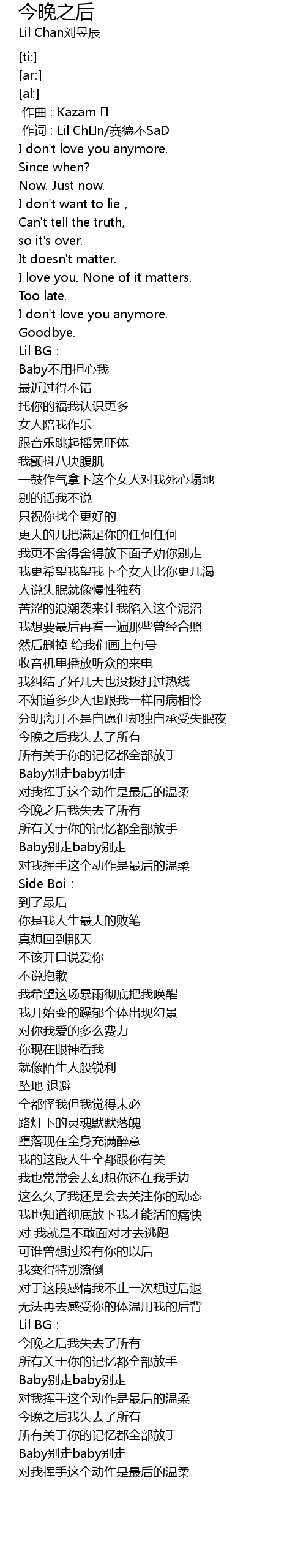 | [00:01.000] | 作词 : Lil Chən/赛德不SaD |