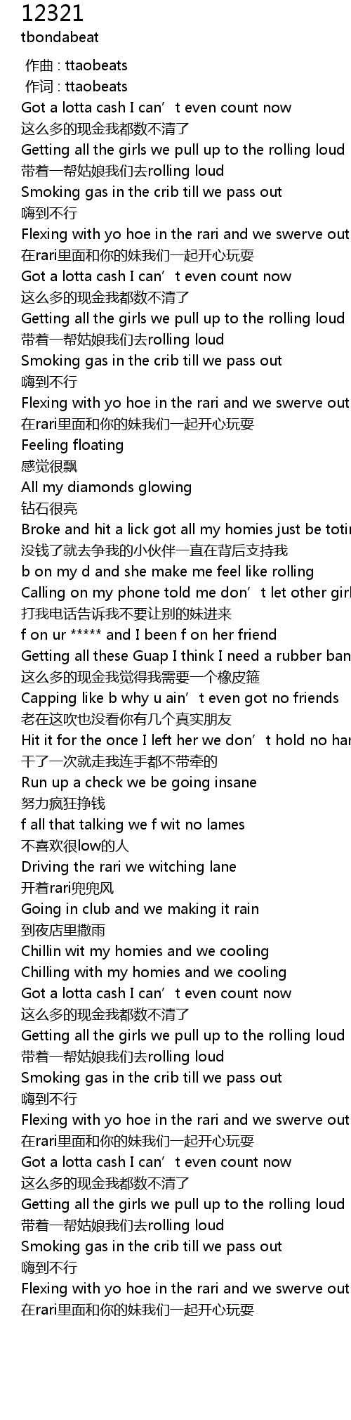 | [01:14.451] | Getting all the girls we pull up to the rolling loud |