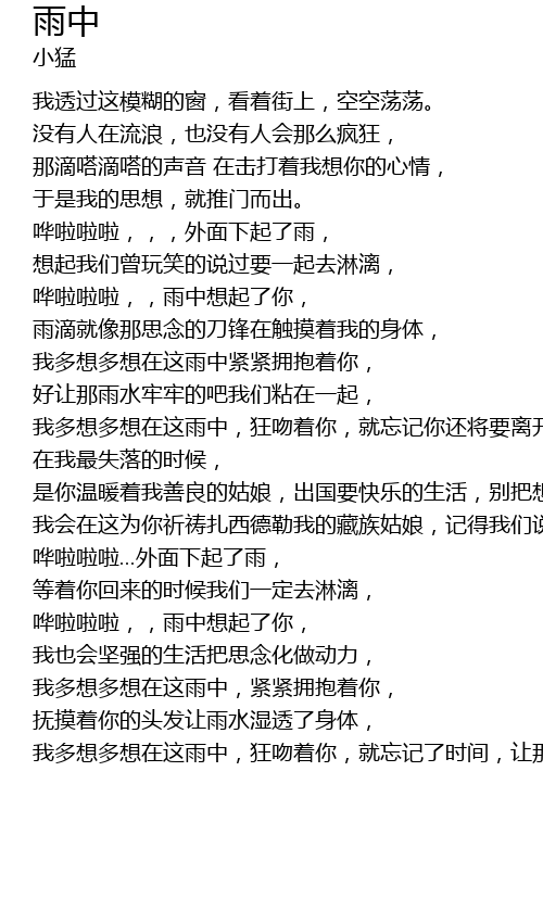 | [03:56.65] | 我多想多想在这雨中,狂吻着你,就忘记了时间,让那雨水淹没了我和你。 |
